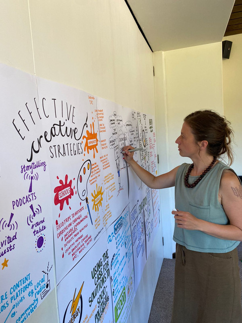 Graphic harvesting is a creative visual response to complex social and environmental issues. A series of drawings and mind maps are made in response to a presentation at a conference or workshop - this can either be live, produced ahead of time or after the event. The key points are documented in a vibrant and engaging way. The illustrations help participants retain the important information from the presentation, and can be used on team stationery, as posters in meeting rooms, in annual reports, and many other applications.