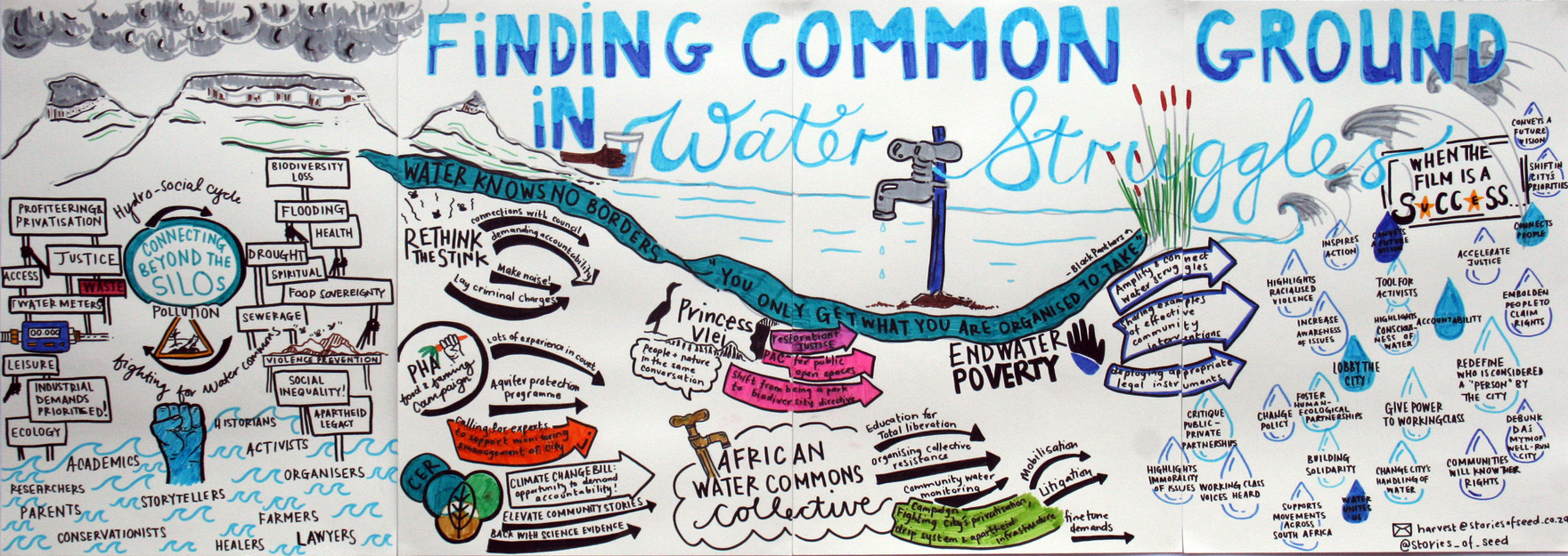 Although much of the joy of graphic harvesting is in the final outcome, the magic is really in the process. Participants watch as the problems, stories and ideas they are so familiar with take on new forms and make connections with other ideas and stories, perhaps making different outcomes imaginable, and therefore possible.